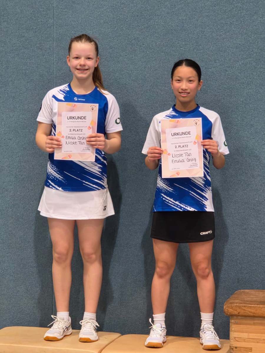 Emma Höfer wurde im Einzel U15 Dritte. Nicole Tan und Emilia Grünig folgten ihr. Im Doppel gewann Emma den Sieg. Emilia und Nicole kamen dahinter. Benjamin Mayer holte Platz 6. Mit Sven Nothof kam er ins Finale. Sie verloren knapp. Trotzdem super – denn beide spielen eigentlich U13.